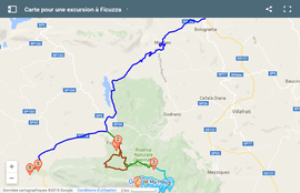 Le bois de la Ficuzza se trouve sur la partie est de la SS118 (ligne bleue sur la carte ci-dessus). Aux environs de Bolognetta, cette dernière devient la SS121. En direction d'Agrigente, cette dernière devient à son tour la SS189.
