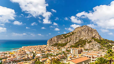 C'est sûrement le dialogue de la mer et de la montagne qui fait de la Sicile l'une des plus belles îles du monde. Ce dialogue est perceptible à Cefalu, même en plein centre-ville : à l'Ouest la plage vient jusqu'à la vieille ville et à l'Est, au-dessus des toits, surgit l'immense Rocca, lieu de prédilection des siciliens depuis des milliers d'années.