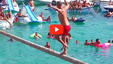 C'est donc en son honneur que chaque année, au mois d'août, les jeunes les plus méritants de Cefalu se soumettent à cette épreuve de courage en cherchant à rejoindre le drapeau fixé à l'autre extrémité de la barre. On comprend aisément qu'il leur faut du courage et de l'habileté physique : la poutre est recouverte d'un savon qui la rend glissante (voir la vidéo ci-dessus). Faites-vous une idée par vous-même!