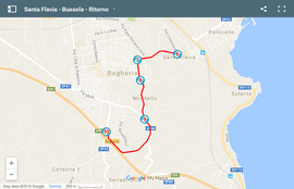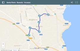 Questa bussola di Trip Tipp descrive il percorso dall'uscita autostradale di Bagheria fino a Santa Flavia e viceversa e fornisce inoltre una panoramica del centro storico di Santa Flavia: