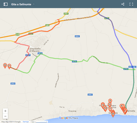 Da Palermo bisogna percorrere circa 100 km l'A29 per raggiungere Selinunte. Da Trapani, in alternativa all'autostrada, è possibile prendere la strada statale SS115, che, attraverso il primo tratto di 70 km che costeggia il mare, vi porta a Campobello di Mazara (a sinistra sulla cartina). Da qui restano ancora 15 km da percorrere lungo la strada provinciale (indicata sulla mappa sopra con il colore verde). Tuttavia il percorso autostradale è soltanto 10 km più lungo e perciò, con tutta probabilità, anche la soluzione più rapida.