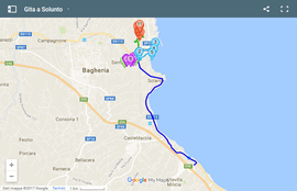Se avete affittato una casa vacanza a Santa Flavia (punti viola dall'1 al 6) potrete raggiungere comodamente Solunto sia a piedi che in bici. Per farlo vi consigliamo di seguire il percorso segnato in verde.