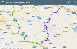 I visitatori che provengono da Palermo dovranno prendere l'uscita autostradale di Caltanissetta e seguire poi la linea verde nella cartina in alto. Quelli che provengono da Catania invece dovranno prendere l'uscita autostradale di Dattaino e seguire poi la linea blu.