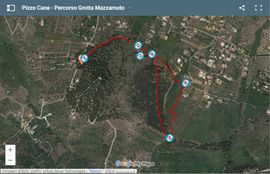 Il percorso a piedi più semplice da percorrere inizia all'ingresso nord della riserva naturale di Pizzo Cane, Pizzo Trigna e Grotta Mazzamuto. Puoi parcheggiare la tua auto al bivio (indicatore rosso 1 sulla mappa). Questa mappa suggerisce ancora dei percorsi alternativi: