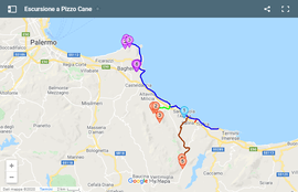 I nostri alloggi per vacanze a Bagheria (punti viola da 1 a 3) e Santa Flavia (punti viola da 4 a 9) sono anch'essi vicini a questa autostrada. Da qui è possibile raggiungere Pizzo Cane in poco tempo.