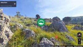Partendo dal parcheggio (bussola 1) incontriamo un bivio (bussola 2) dopo circa 100m. Qui svoltiamo a destra verso la grotta (bussola 3). Ti chiedi come siano finite queste grandi rocce in questo enorme buco profondo 50 metri? Se guardi a nord, troverai la risposta: colpa del mare.