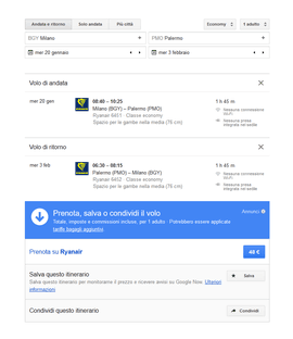 Se avete anche un account Google potete fare molto altro ancora: potete salvare il vostro volo, aggiungerlo al calendario e condividerlo con amici. Google poi vi ricorderà per tempo del vostro volo e vi informerà di eventuali cambiamenti o ritardi. Utile, vero?