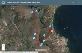 This Trip Tipp Compass describes the east hiking trail at Monte Catalfano. It takes you from the east entrance to the highest point on Monte Catalfano. It offers a breathtaking view of the Gulf of Termini Imerese.