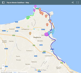 If you are coming to Monte Catalfano from a different location, you can use the A19 motorway. But be careful: the two closest connections for Bagheria and Casteldaccia (see map above) are not recommended for visitors enjoying their holidays who don't have a great deal of local knowledge. As is often the case in Sicily, these two connections involve a lot of winding streets through the two cities.