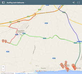 Die alte Stadt Selinunte ist nur 10 km von einer neuen Autobahn entfernt - der A29 Palermo - Mazara del Vallo. Kurz vor dem westlichen Ende der A29 geht es vom Autobahnanschluss Castelvetrano auf einer geraden Strecke direkt auf den Parkplatz von Selinunte (Marker 1 in der Karte oben).