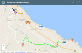 Neben der Ruine der Kirche Santa Maria di Campogrosso gibt es ein weiteres beeindruckendes Bauwerk der Normannen - den Torre Normanna (Marker 4). Die Normannen haben überall entlang der Küste solche Wehrtürme gebaut um Ihre Macht zu festigen. Der von Altavilla Milicia ist besonder groß und sehr gut erhalten.