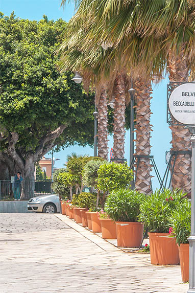Die kleine Stadt vor den Toren Palermos liegt am Meer in rund 100 m Höhe. Das haben die Bürger der Stadt genutzt und sich einen riesigen Belvedere gegönnt (Marker 1 in der Karte unten).