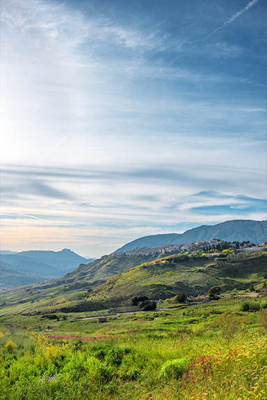 Heute haben wir glücklicherweise friedlichere Zeiten auf Sizilien. Wir schiessen nur noch mit dem Fotoapparat. Und das lohnt sich wegen der "Felsenlage" in Polizzi Generosa ganz besonders an den Rändern der Stadt. Z.B. am grossen Belvedere mit seinem direkten Blick auf die Höhenzüge der Madonien.