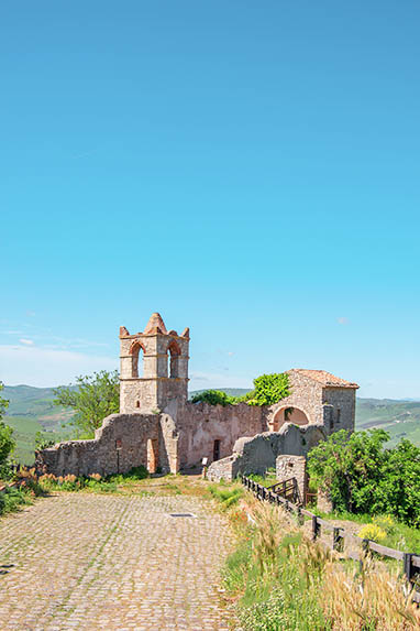 Atemberaubend ist auch der Blick von der Chiesa della Commenda auf das Landesinnere Siziliens. Sie war einst Sitz des Malteserordens und ist heute eine gut gepflegte Ruine mit Panoramablick.
