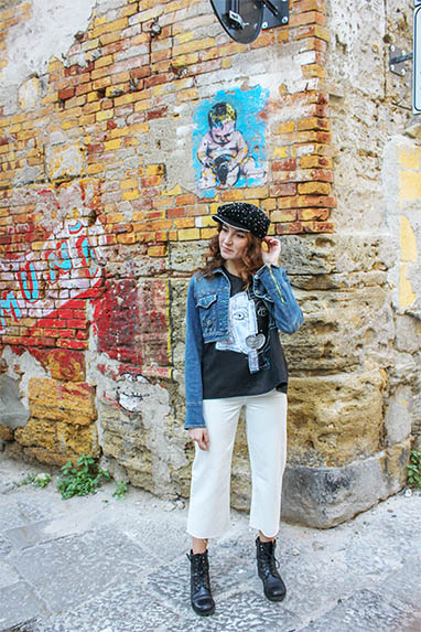 Wie z.B. von Filly Cusenza aus Bagheria. Sie kreiert tragbare Kunst aus Stoffen, Faden und Knöpfen. Ihr Markenzeichen ist das peppige Cartoon Girl Filly Biz... mehr
