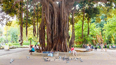 Für alle botanisch interessierten Palermo-Besucher bietet die Villa Garibaldi noch eine ganz andere Sehenswürdigkeit: riesige Vertreter des grossblättrigen Feigenbaums (ficus macrophylla).