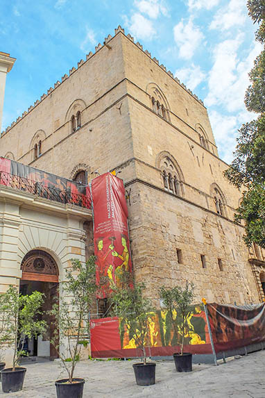 In ihm erkennt man deutlich die normannischen Wurzeln der Familie Chiaramonte. Selbst Kirchen sehen aus wie eine Festung und genau daher rührt der heute gebräuchliche Name des ursprünglichen Palazzo Chiaramonte - also Palazzo Steri. Es ist eine Kurzform von "Hosterium Magnum" und bedeutet befestigter Bau. In Cefalù gibt es übrigens eine ähnliche Sehenswürdigkeit mit dem Namen Osterio Magno.