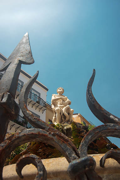 Sonntags ist dieser Blick allerdings verstellt. Dann findet direkt vor der Villa Garibaldi ein grosser Flohmarkt statt. Hier gibt es dann nicht nur den üblichen Trödel, sondern auch Sehenswürdigkeiten wie die Harfen-Spielerin im Bild weiter unten.