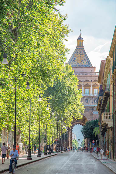 Obwohl die Via Roma mitten durch die Altstadt führt, ist sie breit, luftig und sogar ein wenig grün. Ein gutes Entree also für die angeblich so hektische und düstere Hauptstadt Siziliens.